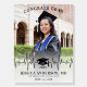 This graduation-themed party sign features a bold design with a photo background and a white gradient at the bottom. At the top, "Congrats Grad" stands out in classic serif fonts, while the bottom showcases a graduation cap illustration, followed by the graduate's name, school name, and date. The modern yet timeless design combines the celebratory tone of the graduation cap with personalized details, making it perfect for any graduate.