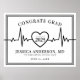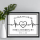 This heartbeat-themed graduation party sign features a bold black and white design, with a striking black double-line frame and a white background, adding a modern yet timeless touch. The classic serif fonts and clean, modern typography perfectly complement the EKG heart line, making it an ideal way to celebrate a medical or nursing school graduate. While the current design is in black and white, all colors—including the heartbeat line and background—can be customized to match school colors or the graduate’s favorite shades.