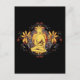 Golden Buddha sits in meditation holding a bowl with both hands against a floral background of beautiful flowers! Buddhapatra Mudra is one of the mudras identified with Shakyamuni Buddha.