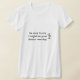 My overall review is that the T-shirt is nice, it fits true to size however the font is significantly smaller than advertised and you can't read it. The printing is unreadable and there is a strain to read it. It does not look like the advertised product. Maybe the shirt color is darker or a larger more visible font should have been used. Photos with and without flash and font is barely legible.