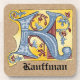 Medieval Blue and Red Ivy Illuminated Letter K Beverage Coaster