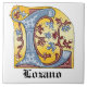 Medieval Blue and Red Ivy Illuminated Letter L Ceramic Tile