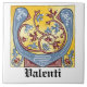 Medieval Blue and Red Ivy Illuminated Letter V Ceramic Tile