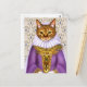 Postcard in a Portrait of a ginger cat, dressed as an aristocratic, medieval cat maiden, in a purple, elaborately trimmed dress, and a veil