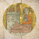 Religious Vintage Christian Christmas Sticker extracted from a Catholic Medieval Illuminated Manuscript from a 14th century Latin Book of Hours. It represents the Nativity of the Infant Jesus Christ surrounded by the Blessed Virgin Mary and Saint Joseph at Bethlehem. Great holiday christmas sticker for your gifts or your christmas cards' enveloppes.