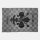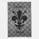 Grungy punk checkerboard pattern in gray tones with an awesomely elegant royal black fleur de lis on a pretty dish towel. You can also hang this on the wall using double sided tape.