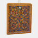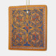 Abstract geometric design featuring detail from medieval Armenian illuminated manuscript in gold, red and blue