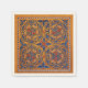 Abstract geometric design featuring detail from medieval Armenian illuminated manuscript in gold, red and blue