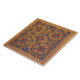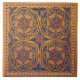 Abstract geometric design featuring detail from medieval Armenian illuminated manuscript in gold, red and blue