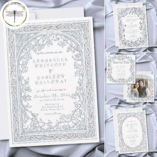 Medieval Fantasy Frame Blue Gold Etching WeddingDesigned by Kathe Santillo