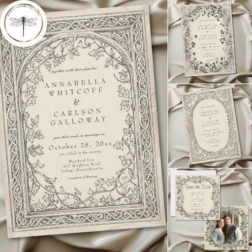 Medieval Fantasy Vintage Black Etching Wedding Invitation
