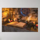 This fantastic illustration features a mysterious medieval wizard's study filled with magical alchemy, ancient manuscripts, and witchcraft tools. Perfect for fantasy lovers and anyone fascinated by dark magical interiors! The spooky cottage room showcases vintage witchy herbs, crystals, candles, and a mystical ball. Great for halloween enthusiasts who love magical fairytale settings. This rustic lab captures the fantastic essence of medieval science and alchemy. Perfect for anyone who loves magical illustration, mysterious interiors, and fantastic fantasy settings. Great for witchcraft fans and lovers of magical medieval homes!