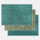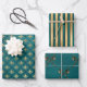 Beautiful faux gold glitter Medieval-style patterned Wrapping Paper Sheets on deep teal background. Co-ordinating striped pattern adds elegance & class to your gift presentation - for all occasions.