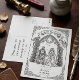 Embark on a fairytale journey with this enchanting medieval-themed 'Save the Date' card. Featuring a noble knight and his bride standing before a gothic archway, flanked by majestic dragons and a mystical unicorn, this design evokes a sense of timeless romance and adventure. The intricate hand-drawn style, reminiscent of ancient scrolls and tapestries, makes it a unique choice for couples planning a fantasy-inspired or Renaissance-themed wedding. Announce your special day with a touch of magic and historical charm.