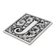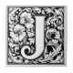 A black and white vector illustration of the letter in an elaborate medieval style, created in the style of Albrecht Dürer. The design is a square with a large central floral motif surrounded by symmetrical geometric patterns and swirls.