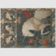 This vintage William Morris inspired design shows cream unicorns with gold breastplates and filigree horns, surrounded by red and white poppies among jade and turquoise leaves. Influenced by early 19th century book plate styles and art nouveau botanical patterns, it brings a classic, decorative feel to creative projects.