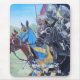 This unique mousepad has one of my favorite paintings on it, the jousting knights on horseback painting is titled "The Four Knights of The Forest Festival." I painted it from a photograph that I took when I was at the Forest Festival on Chingford Plains in the UK. The forest festival is held every year and it celebrates everything to do with historic Epping Forest. On two of the years that we attended we were lucky enough to see the re-enactment of a traditional joust between four knights on horseback, each knight is representing his "kingdom." I captured the photograph as the knights were parading around the jousting arena and I couldn’t wait to paint it. The Black Knight went on to achieve a glorious victory over the other three knights. This original realist medieval art picture looks great on this mousepad, I'm sure this historic art image will make an unusual and unique gift for someone special or perhaps you just want to treat yourself to this one of a kind original jousting knights mousepad. This is a customizable mousepad, you can personalize it by adding your own text.