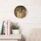 Clock featuring William Morris’ tapestry The Arming and Departure of the Knights (1891-4). The Knights of the Round Table sit on their horses in a forest outside a castle. Beautiful women hand the knights their weapons and shields. A wonderful gift for Arthuriana enthusiasts and Victorian art collectors.