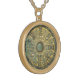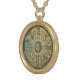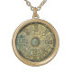 Medium round gold-finished necklace with an image of an early medieval gold medallion that shows signs of erosion and that has, in places, an aqua patina. See matching round button, round charm, large round premium metal keychain, swirl metal keychain and wrist watch. See the entire Gemstones & Medallions Necklace collection in the ACCESSORIES section.