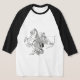 I bought the Men's Basic 3/4 Sleeve Raglan T-Shirt, White/Navy. It arrived on time for a gift and is of a great quality and fits perfectly! So cute! Zazzle has done it again! The printing was clear and filled in solidly.