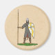 Clad in knee-length hauberk and nasal helmet, carrying a steel-tipped lance and a kite-shaped shield, a dismounted Norman knight of circa 1066 appears ready to conquer medieval England in this original illustration by Richard H. Fay.