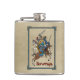 Well made flask, a little better than I had expected. Flask came in clear plastic box which gave it a nice presentation when I took it out of the zazzle packaging. Image is not printed on flask but on sticker. Don't know how this will hold up I haven't used it yet. This would make a Great gift! I plan to purchase more for friends! Cheers. I thought a little brighter than computer. Very crisp, writing wasn't