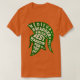 My 11 yo wore adult XL (5’7” 165#). The 8yo is small framed. She wore adult small and tied it in the back. Grandma wore adult large with long sleeve shirt underneath. Tall girl adult medium. Dark haired male adult large. Good quality dark Heather gray, Gildan brand shirt. -it was next up from basic choice and cost about $20 per shirt. Not too thick or thin. Washed and dried well, no major shrinkage. Not see-through. Can wear a bra under it fine. Screen print is just as shown and well done, front and back.