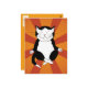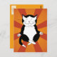 A tuxedo kitty in pencil sits meditating in a cross-legged pose on this postcard. The black and white cat’s paw pads and nose leather are pink. His expression is one of total peace and contentment. Shining from behind him is a background of alternating orange and yellow gradient rays. Perfect for any practitioner of yoga who is also a cat lover. From my original digitally created image.