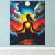 This bold artwork portrays the abstract silhouette of a woman in lotus pose, radiating golden light from her chest beneath a glowing moon. Intense skies and dramatic weather form the backdrop, painted with textured strokes and vibrant colors to heighten the spiritual atmosphere. A powerful fusion of calm meditation and cosmic energy, this piece makes a striking focal point for yoga spaces, meditation rooms, or any home that embraces balance and mindfulness.