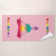Yoga figure in meditation, colorful art. Custom background color. The seven chakras aligned.