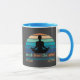 A coffee mug featuring a person practicing meditation, with the phrase "Break from the Grind" centered around the image. The design suggests a peaceful escape from the daily stresses through mindfulness and inner peace.