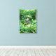 Photograph of a statue in a meditation pose in a lush plant garden, printed on gloss stretched Canvas. ---- Photograph is copyrighted by the photographer, Christina Spiegeland.