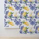 Mediterranean Blue Antique Floral & Lemon Pattern Wallpaper