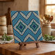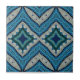 This sophisticated ceramic tile design features a symmetrical mosaic layout with intricate geometric shapes in calming shades of navy blue, teal, and soft beige. It is an ideal choice for homeowners looking to add a professional touch to a kitchen backsplash, bathroom wall, or even as a decorative trivet in a Mediterranean-themed space. Order yours today to elevate your interior design with this timeless, artistic flair.