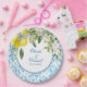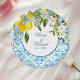 Bring a fresh Amalfi Coast aesthetic to your wedding reception with this Mediterranean-inspired paper plate design. Featuring classic blue tile patterns and bright citrus florals, it is perfect for bridal showers, rehearsal dinners, wedding brunches and dessert tables. The elegant blue and yellow palette adds a luxurious coastal Italian feel to your event styling. Ideal for summer weddings, destination celebrations and Mediterranean themed parties, this plate coordinates beautifully with matching napkins and decor. A stunning detail for citrus-inspired wedding tablescapes.