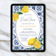 Mediterranean Blue Tile Citrus Lemon Bridal Shower Invitation