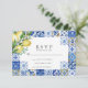 This elegant wedding RSVP/response/reply card features a white background with blue Mediterranean tiles and lemons/citrus in watercolor. Personalize it for your needs. You can find matching products at my store.