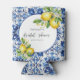 Mediterranean Blue Tiles Lemons Bridal Shower Can Cooler