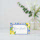 Invite guests to share their favorite dishes with this Mediterranean Blue Tiles Lemons Recipe Request Enclosure Card. Adorned with sunny yellow lemons and elegant blue tile accents, this card is a beautiful way to gather meaningful recipes from loved ones. Perfect for including with bridal shower invitations, it adds a personal touch to your celebration and creates a lasting keepsake for the bride-to-be.