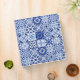 Mediterranean Blue White Tile Pattern Watercolor 3 Ring Binder