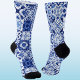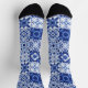 Mediterranean Blue White Tile Pattern Watercolor Socks