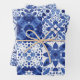 Mediterranean Blue White Tile Pattern Watercolor Wrapping Paper Sheets
