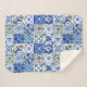 Mediterranean Blue, White & Yellow Floral Pattern Sherpa Blanket