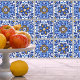 Mediterranean Blue Yellow Floral Tile Peel & Stick Wallpaper
