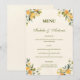 Impress your guests with this romantic wedding menu inspired by Mediterranean citrus groves and olive branches, blending Hispanic warmth with modern elegance. Soft greenery, airy layouts, and romantic details create a fresh and timeless design ideal for bilingual couples.