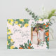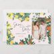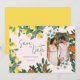 Announce your special day with this elegant Mediterranean-inspired Save the Date design. Featuring hand-painted lemons, oranges, olive leaves, and delicate blossoms, this artwork captures the charm of a sunny Italian or coastal destination wedding. The soft romantic color palette and modern script typography create a stylish and timeless look, while the photo space allows couples to personalize the card with their favorite engagement picture. Perfect for Amalfi Coast, Italian, Greek, or citrus-themed weddings, this design beautifully sets the tone for a joyful celebration. Original artwork by Caroline Bonne Müller