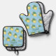 Mediterranean Citrus Lemon Custom Name Oven Mitt & Pot Holder Set