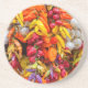 I'm not sure how much moisture these will soak up, haven't had a chance to try them out, but they look good and I like the cork backing. The printing is fine ~ and really looks cool with an artisan's hand made "Hurricane Martini" glass sitting on top of my painting (on the coaster) in my studio.