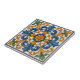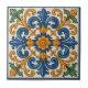 Brighten your space with this captivating decorative tile, featuring a rich palette of cobalt blue, golden yellow, and fresh green. A central orange flower anchors an elegant scroll and leaf motif, all framed by a classic blue border. Perfect for adding a cheerful and artistic touch to backsplashes, accent walls, or creative home projects. Elevate your interior with the timeless beauty of this decorative tile, reminiscent of traditional hand-painted Italian or Spanish ceramics. This stunning piece showcases a harmonious symmetrical design, with bold cobalt blue scrolls and elegant golden acanthus leaves gracefully intertwining around a warm orange central flower. Lush green foliage accents the corners, adding a refreshing touch of nature. The crisp white background and deep blue border beautifully define this intricate pattern, making it ideal for creating luxurious feature walls, unique fireplace surrounds, or charming kitchen accents. This versatile tile is an excellent choice for adding character and an inviting warmth to any room, from a sunlit kitchen to a tranquil bathroom, bringing a touch of "Old-World" charm with a lively twist. The perfect balance of classic design and vibrant color