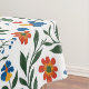 Brighten your dining space with this stunning tablecloth featuring a hand-drawn floral pattern in vibrant red, yellow, blue, and green hues. Inspired by Mediterranean charm, the design captures the beauty of blooming flowers and lush foliage, adding a cheerful and artistic touch to your table setting. This tablecloth is perfect for casual meals, festive occasions, or outdoor gatherings, and effortlessly combines practicality with timeless elegance. Transform your table into a beautiful centerpiece with this delightful floral tablecloth.